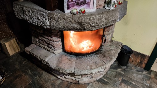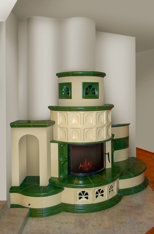 Kominki wyróżniające się wielokształtnymi obudowami, ozdobionymi w wielu miejscach elementami kamiennymi.